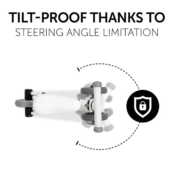 Die beidseitige Lenkereinschlagsbegrenzung erleichtert dem Kleinkind das Steuern in die richtige Richtung und verhindert das leichte Umkippen des Dreirades.