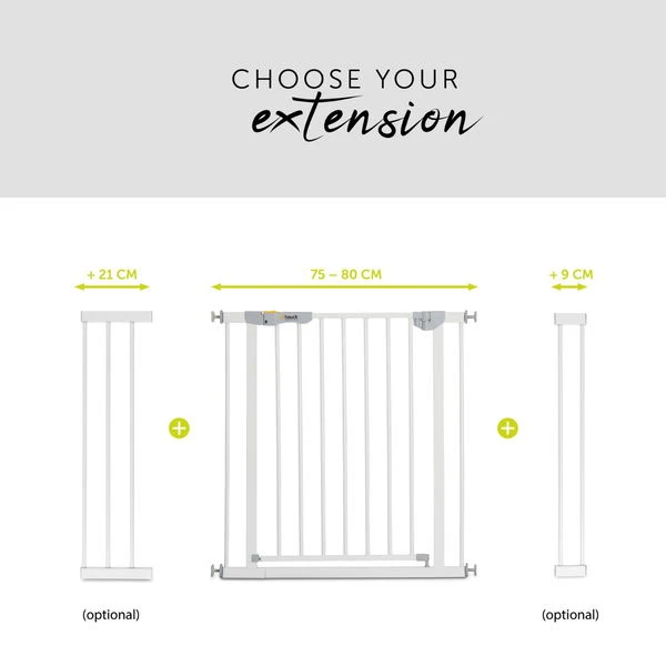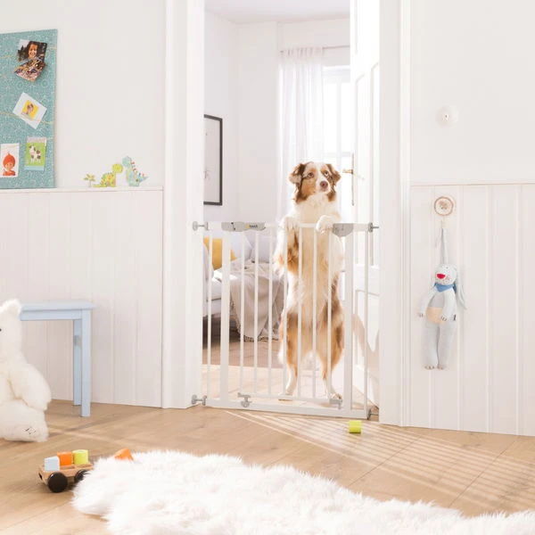 Die Tür des Gitters lässt sich bequem und mit nur einer Hand in beide Richtungen öffnen. So ist die andere Hand für das Baby oder Einkaufstaschen frei. Nach dem Hindurchgehen fällt die Tür automatisch wieder sicher zu, was auch der Farbindikator als zusätzliche Sicherheit bestätigt. Damit die Tür auch bei kleinen Kinderhändchen geschlossen bleibt, verfügt das Gitter über einen zweifachen, kindersicheren Verschluss, den nur Erwachsene bedienen können.
