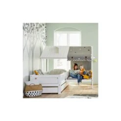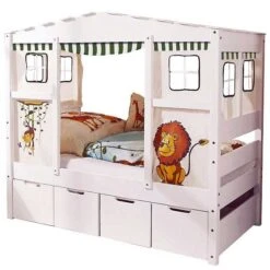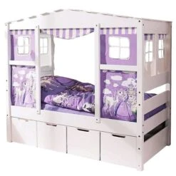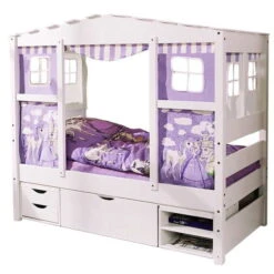 Ticaa Hausbett MINI Horse Lila Kiefer Schubkästen Weiß Massivholz – Dessin: Horse Lila – 80 X 160 Cm