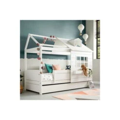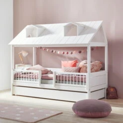 Ticaa Hausbett MINI Horse Rosa Kiefer Schubkästen Weiß Massivholz – Dessin: Horse Rosa – 80 X 160 Cm