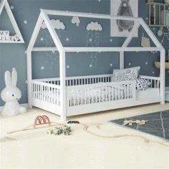 Das Besondere am Nature Kid Sara Hüttenbett ist das Konzept, denn Sie bekommen alles in einem. Die Dachkonstruktion und ein Rollrost sind bereits im Lieferumfang enthalten. Eine weitere Besonderheit dieses Hüttenbettes ist der Rahmen, dieser ist standardmäßig bodentief, doch Sie können es auch 10 cm höher aufbauen. Der Einstieg des Bettes kann wahlweise links oder rechts sein. Bei der Dachkonstruktion können Sie individuell entscheiden, ob Sie beide Dachquerbalken montieren möchten oder nur einen. Denn auch mit nur einem Dachquerbalken ist das Nature Kid Sara Hüttenbett ein echter Hingucker im Kinderzimmer.
