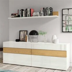 now! vision by hülsta Kombination 6 70x246x52 Lack-weiß/Natureiche/Lack-Hochglanz-weiß
