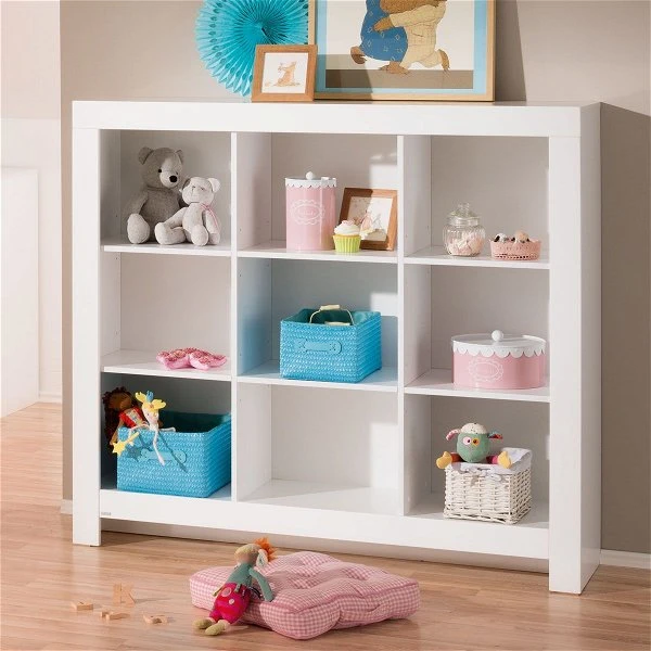 Das Regal hat 9 offene Fächer und fügt sich dank seiner modernen Abmessungen harmonisch in jede Wohnumgebung ein.