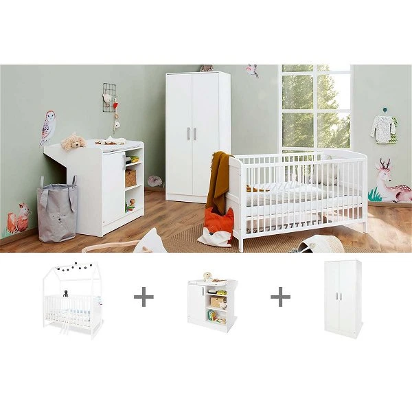 Das Pinolino Hilda & Viktoria Kinderzimmer wird im Dekor Uni weiß hergestellt. Dieses Pinolino Hilda & Viktoria Kinderzimmer lässt sich mit vielen weiteren Zubehörteilen erweitern. Das Pinolino Hilda & Viktoria Kinderzimmer besteht aus einem Hausbett, einem 2-türigen Kleiderschrank und einer Wickelkommode.