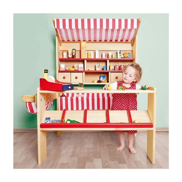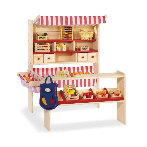 Der Pinolino Marktstand Lucy ist stabil und standfest. Ihr Kind kann nach Herzenslust seine Fantasie ausleben und verkaufen spielen und lernt dabei spielerisch den Alltag kennen.