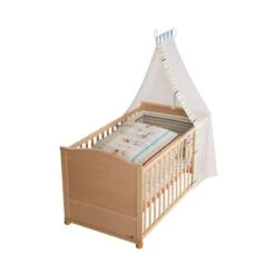 Das Roba Kinderbett Sternchen ist 3 fach höhenverstellbar und mit 3 Schlupfstäben ausgestattet. Die Schlupfstäbe erleichtern zur gegebenen Zeit den Ein- und Ausstieg. Es hat eine Liegefläche von 70 x 140 cm.
