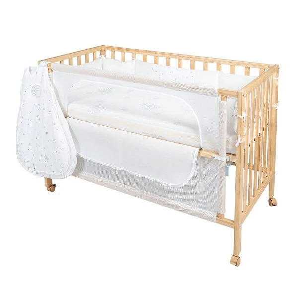 Das Roba Room Bed bietet Eltern und Kind die Möglichkeit, besonders in den ersten Monaten möglichst viel Zeit miteinander zu verbringen. Mit nur wenigen Handgriffen lässt sich das Bett individuell an das Elternbett anpassen und sicher einhängen. Es ist aber auch dank der 4 Bremsrollen als Stubenbett oder Kinderbett verwendbar.