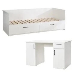 Das roba Sylt Jugendzimmer überzeugt mit einem zeitlosen aber dennoch modernem Design und einer aufwendigen Fräsung an den Fronten und mit Soft-Close-Beschlägen sowie hochwertigen Metallgriffen. Das Tagesbett kann einfach in ein Doppeltbett verwandelt werden und bietet mit 2 Schubladen ausreichend Stauraum. Der Schreibtisch ist ein guter Ort um Hausaufgaben zu erledigen oder seiner Kreativität freien lauf zu lassen. Zusätzlich bietet er genügend Stauraum für alles was man in der nähe des Schreibtisches haben möchte.