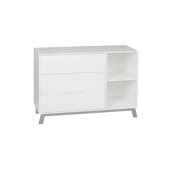 Die Wickelkommode Florence ist mit einem abnehmbaren Wickelaufsatz ausgestattet. So bereitet Ihnen die Kommode auch nach der Wickelzeit noch Freude. Die drei Schübe mit Selbsteinzug und extra starken seitlichen Führungsschienen bieten viel Platz für Windeln und Pflegemittel. Die 2 offenen Fächer bieten zusätzlichen Platz. Eingefräste Griffmulden und massives Fußgestell.