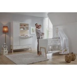 Die platzsparende Kombination aus Kleiderschrank und Wickelkommode ist ein wahres Raumwunder. Die Türen sind mit Soft-Close-System ausgestattet, die Schubkästen besitzen einen Selbsteinzug. Inklusive Umbauset zur Sitzbank.