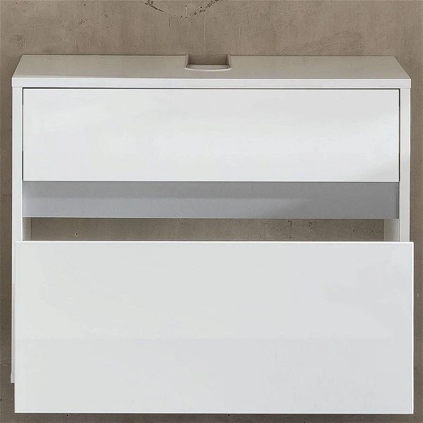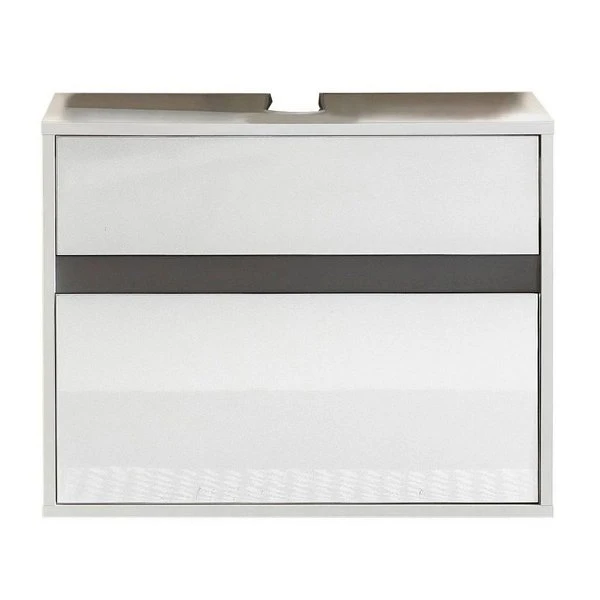 Der trendteam Sol Hänge-Waschbeckenunterschrank ist eine attraktive Lösung für jedes Badezimmer, in dem es noch an Aufbewahrungsmöglichkeiten fehlt in smarter nassraumgeeigneter Gestaltung. Die weiße Front- und Korpusgestaltung kombiniert mit der Absetzung aus Melamin schafft ein modernes Design, das sich harmonisch in den Raum integriert. Der Einsatz von Lack in Kombination mit Dekorfolie sorgt für eine extrem langlebige Oberfläche.